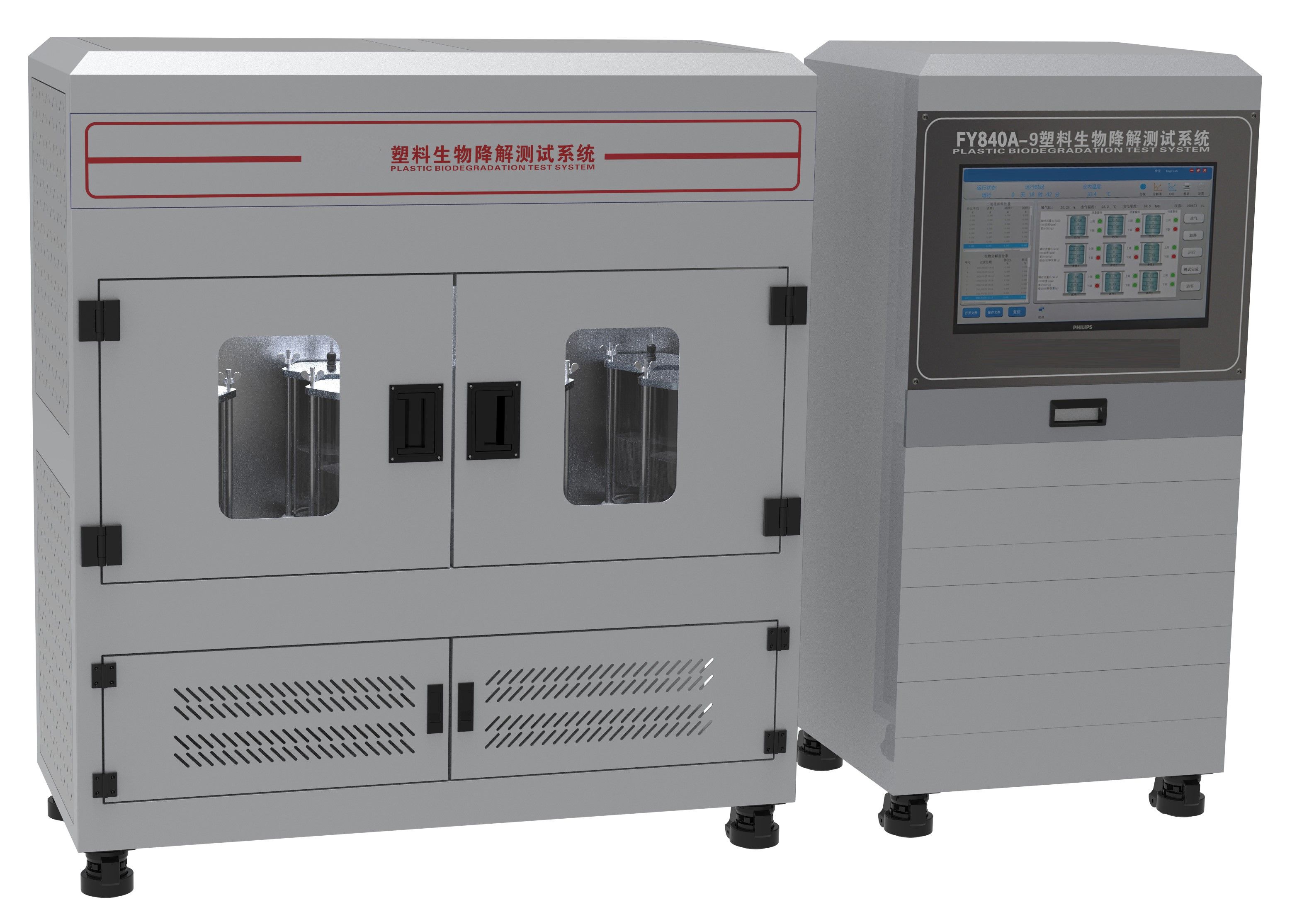 在試驗(yàn)材料的需氧生物分解過程中,二氧化碳、水、礦化無機(jī)鹽及新的生物質(zhì)都是最終生物分解的產(chǎn)物。在試驗(yàn)中連續(xù)監(jiān)測、定期測量試驗(yàn)容器和空白容器產(chǎn)生的二氧化碳,累計(jì)產(chǎn)生的二氧化碳量。試驗(yàn)材料在試驗(yàn)中實(shí)際產(chǎn)生的二氧化碳量與該材料可以產(chǎn)生的二氧化碳的理論值之比為生物分解百分率。