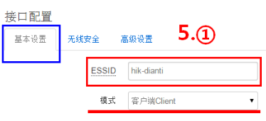 5.同“接入點(diǎn)”訪問方式一樣,訪問另一個(gè)網(wǎng)橋設(shè)備,然后在網(wǎng)絡(luò),無線,點(diǎn)擊修改,接口配置,基本配置和無線安全內(nèi),設(shè)置模式為“客戶端Client”,同時(shí)按照“接入點(diǎn)AP”網(wǎng)橋的ESSID名稱、加密模式和密碼來設(shè)置。